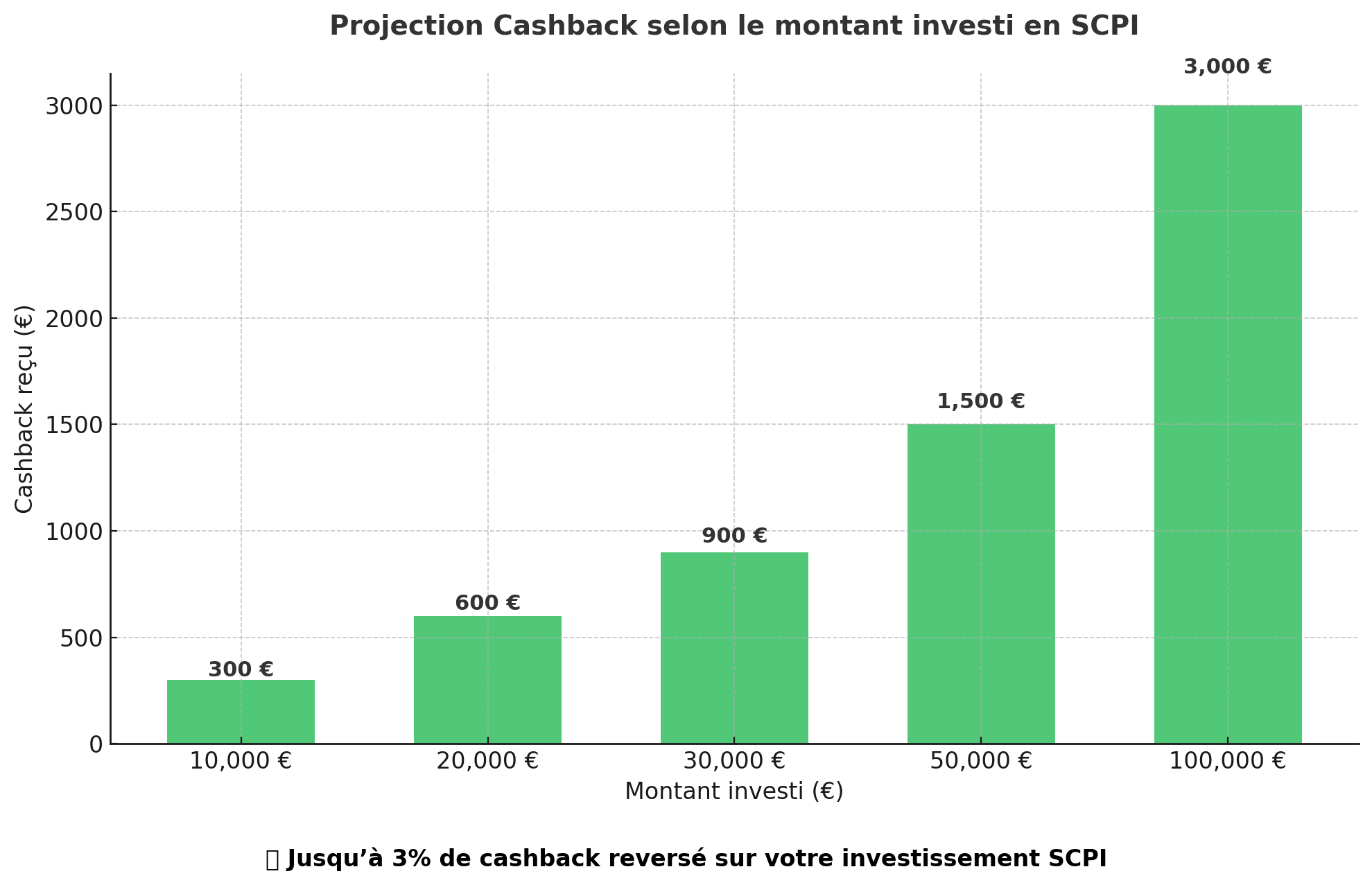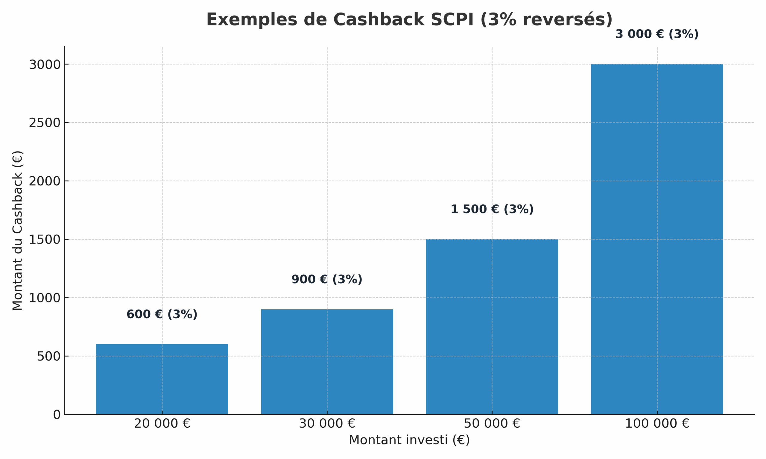 Cashback maximum reversé sur le montant investi en SCPI.
